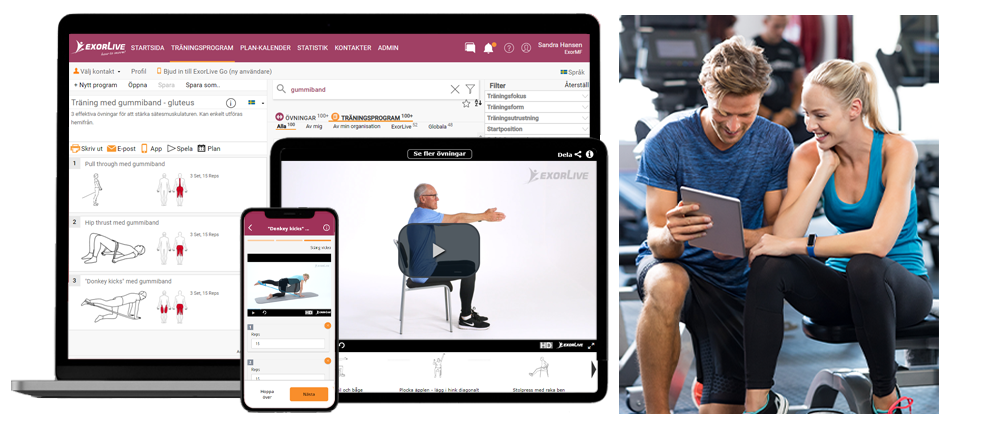 Öka motivationen och träningsresultaten hos dina utövare. Dela övningar, program och planer via ExorLive Go app.
