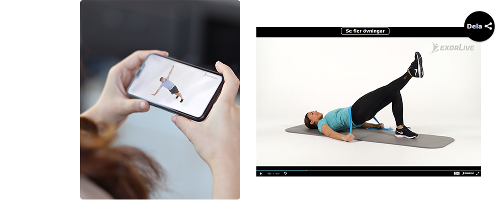 Dela kvalitetssäkrade övningar och träningsprogram på din webbplats, sociala medier och andra kanaler med ExorLive Player.